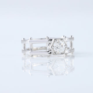 Hexagonal Rivet Round Solitaire Men's Engagement 14K White Gold Ring