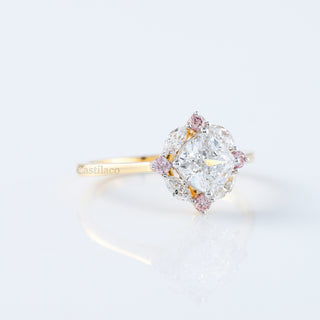 Cushion Cut Halo Pink Round and Marquise Moissanite Diamond Engagement Ring