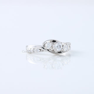 Three Stone Swirl, Bypass Moissanite Diamond 14K White Gold Wedding Engagement Ring
