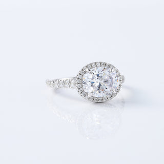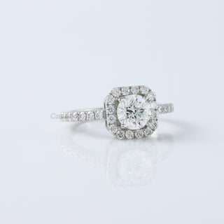 Floral Halo Vintage Art Deco Round Cut Moissanite Diamond 14K White Gold Wedding Ring