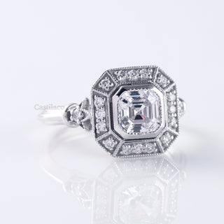 Vintage Double Halo With Split Shank Radiant Cut Moissanite Engagement Ring