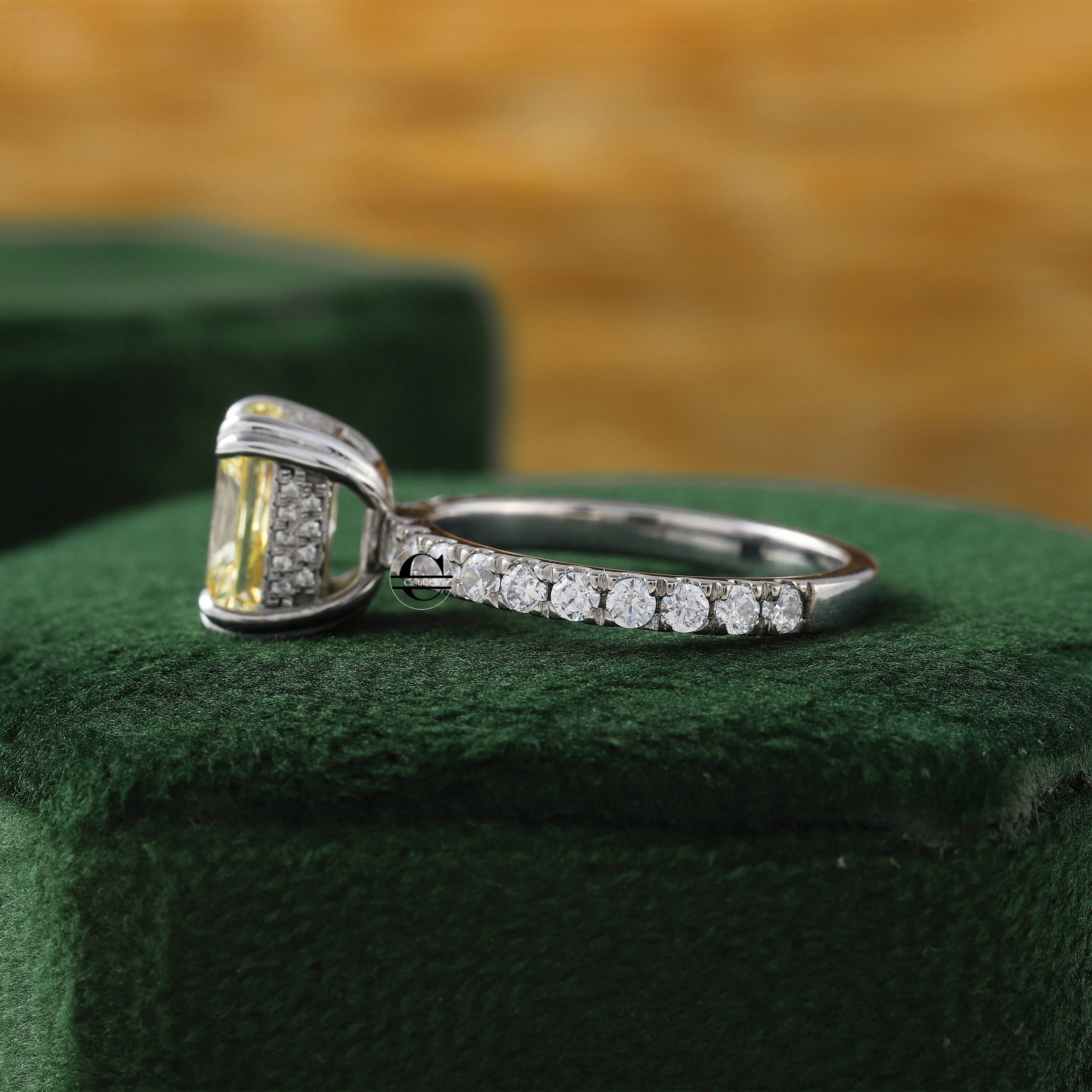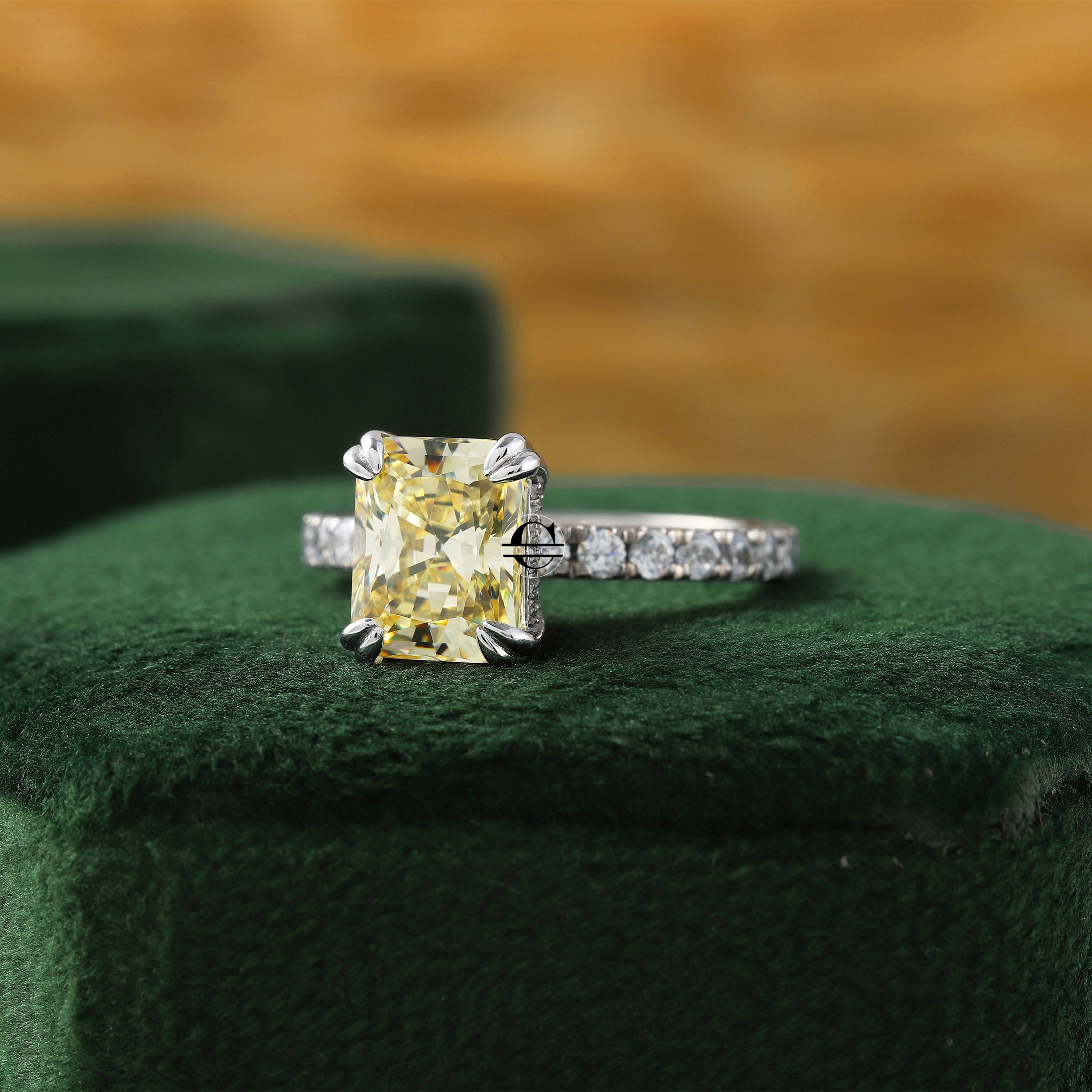 Radiant Cut Vivid Yellow Certified Lab Grown Diamond Double Hidden Halo Engagement Ring