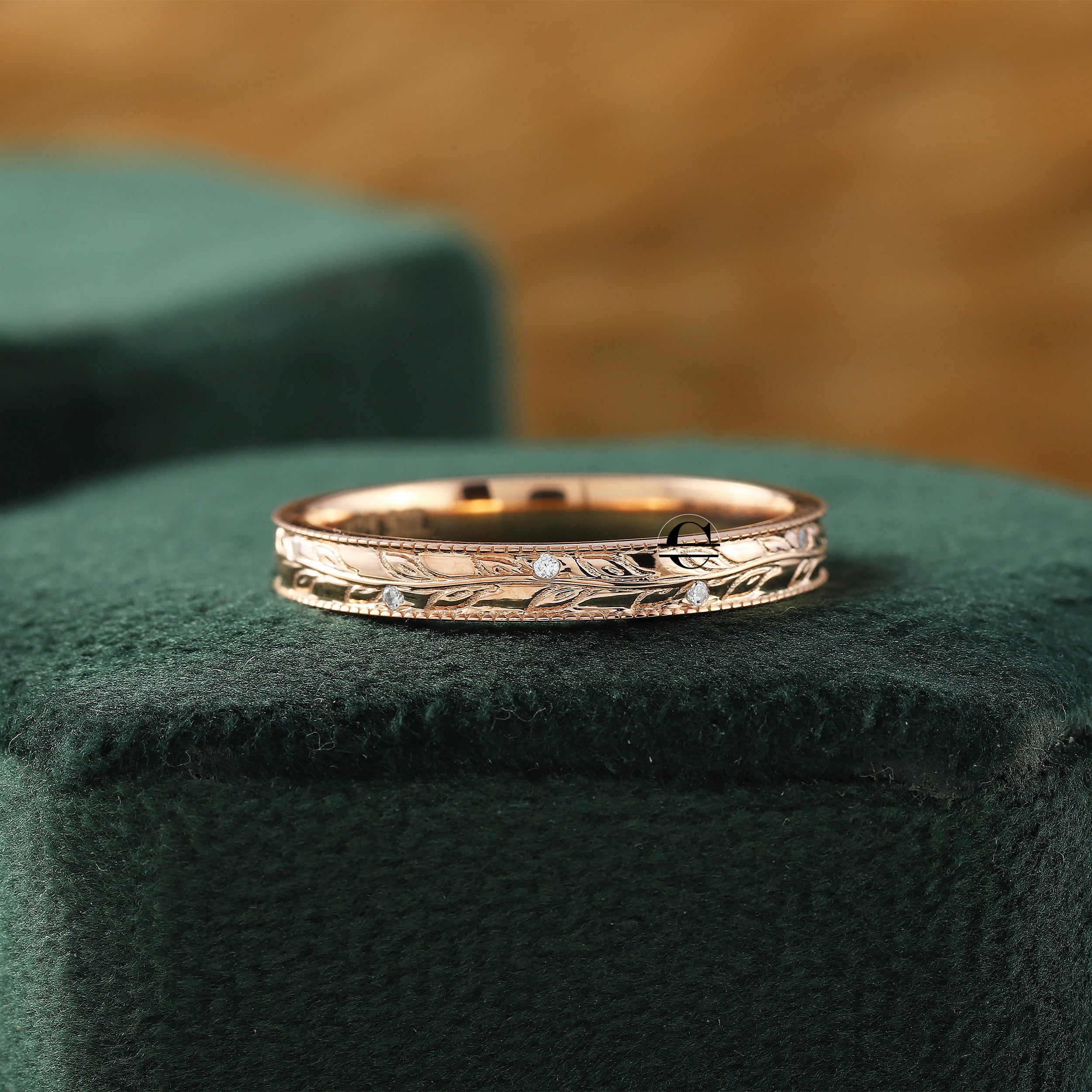 Vintage Full Eternity Round Moissanite Leaf Design Diamond Wedding Band